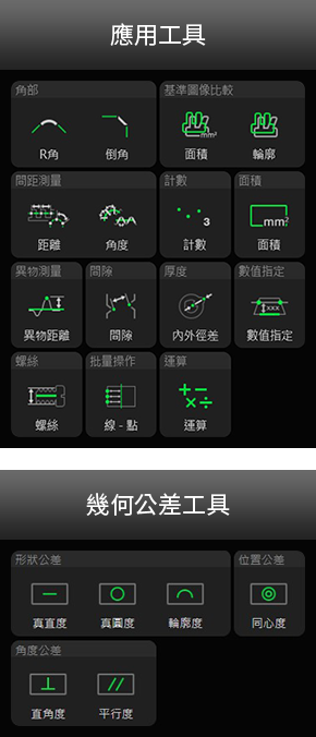 TM-X5000 系列透過(guò)捕捉目標(biāo)外形輪廓,能快速且精確地進(jìn)行量測(cè)。其雙遠(yuǎn)心光學(xué)系統(tǒng)可在大景深範(fàn)圍內(nèi)提供高解析影像,搭配低畸變鏡頭與專用演算法,可於整個(gè)視野內(nèi)進(jìn)行高精度量測(cè),無(wú)需精準(zhǔn)定位、額外光源或現(xiàn)場(chǎng)校正。系統(tǒng)操作簡(jiǎn)易,僅需三步驟即可完成設(shè)定,並內(nèi)建超過(guò) 100 種量測(cè)與檢測(cè)工具,包括 GD&T、公差比對(duì)與缺陷距離檢測(cè),適合多種線上量測(cè)應(yīng)用。