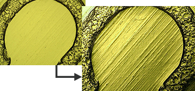 評(píng)估表面形狀的深淺和粗糙度時(shí),形狀的高低差越小,對(duì)比度越低,因此越難觀察和評(píng)估。以往顯微鏡的缺點(diǎn)是由於照明和角度不同,影像的視覺效果也不同,容易因反射而產(chǎn)生光暈,並降低對(duì)比度。結(jié)果就是很難觀察到淺淺的凹陷,而將其遺漏。4K數(shù)位顯微鏡VHX系列具有多重照明功能,可自動(dòng)獲取全方位的照明資料。從中選擇最適合觀察的影像,可大幅縮短照明設(shè)定的時(shí)間。