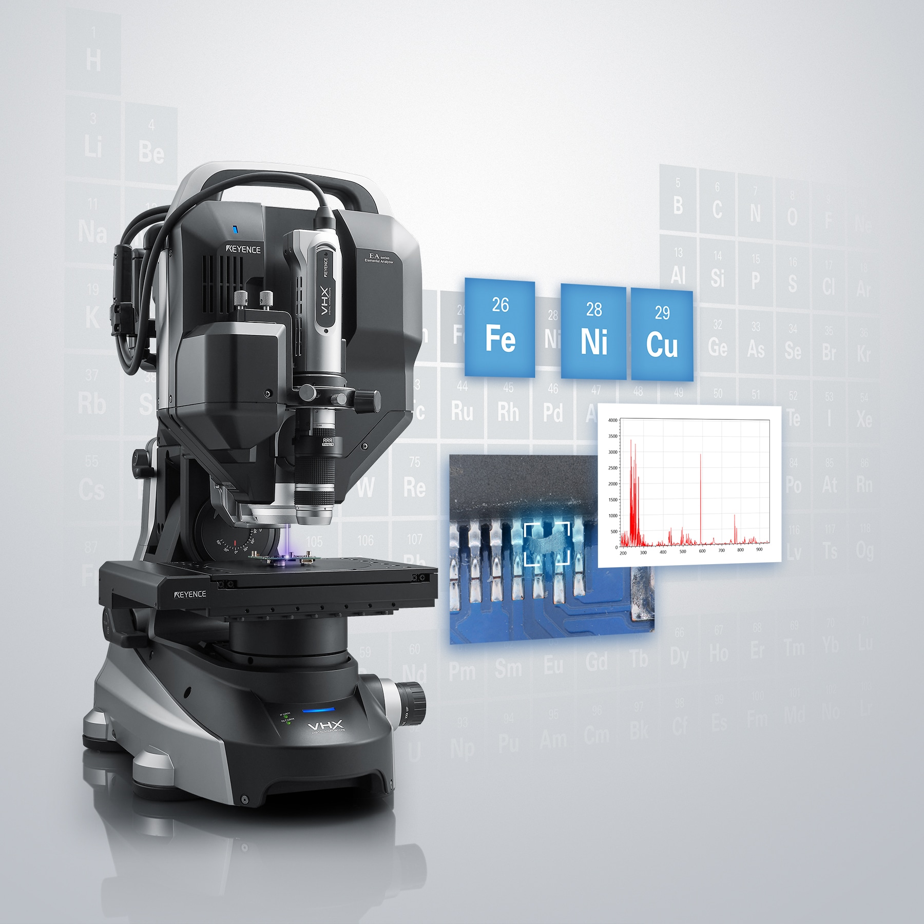VHX 系列元素分析模組上市,實(shí)現(xiàn)了使用數(shù)位顯微鏡進(jìn)行元素分析。只需將目標(biāo)物放置於載物臺(tái)上,無需破壞目標(biāo)物,也不需要蒸鍍或抽真空。搭載AI-建議,誰都能對元素分析後的物質(zhì)確認(rèn)作出適當(dāng)判斷。