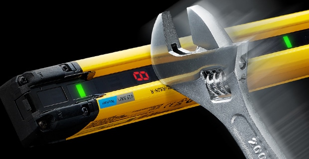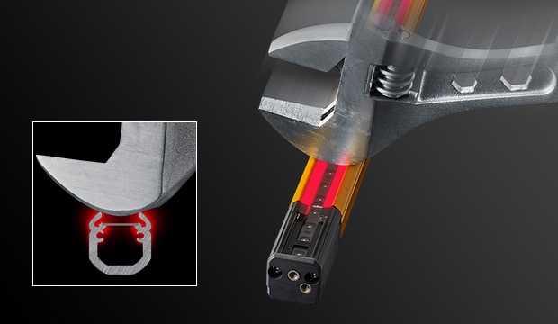 安全光柵GL-V 系列搭載大型線狀指示燈,僅靠本體即可清楚顯示狀態(tài)。當(dāng)入光時(shí)顯示綠色,遮光時(shí)顯示紅色,即使從遠(yuǎn)處也能一眼辨識(shí)光柵是否遮光,有助於迅速?gòu)?fù)原作業(yè)。此外,透過顯示模式還可確認(rèn)受光量降低或錯(cuò)誤狀態(tài),便於及早採(cǎi)取對(duì)策。GL-V 系列可廣泛應(yīng)用於設(shè)備啟動(dòng)、調(diào)整與運(yùn)轉(zhuǎn)階段。雖然尺寸僅為22 mm × 22 mm,卻具備約3 mm 厚的堅(jiān)固外殼結(jié)構(gòu),展現(xiàn)高耐用性。重新設(shè)計(jì)的內(nèi)部光學(xué)構(gòu)造更支援最長(zhǎng)15 公尺的檢測(cè)距離。