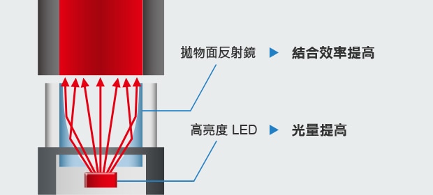藉由最新的高亮度LED與高效能電路設(shè)計,成功大幅提高光量。 在髒汙環(huán)境、低反射目標(biāo)物等需要高功率的場合中,可長時間穩(wěn)定地檢測。