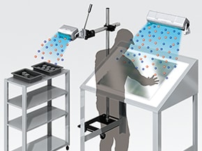 安裝距離200 mm至1000 mm、對(duì)象區(qū)域1000 mm可消除靜電。不需供給氣體即可使用,也適合在桌上使用。