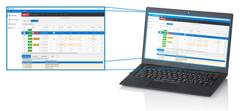 智能監(jiān)控靜電消除器「SJ-F700系列」將迄今為止靜電消除器所必須的定期維護(hù)實(shí)現(xiàn)了「全自動(dòng)化」。不僅是電極針的清潔、電極針磨損所導(dǎo)致的更換、連靜電消除器的性能確認(rèn)也不需人力即可自動(dòng)應(yīng)對。完全免維護(hù),卻可持續(xù)維持同級(jí)最高的靜電消除性能(離子平衡±1 V、靜電消除速度0.5秒、靜電消除範(fàn)圍3 m)。並且,將肉眼不可見的靜電數(shù)值化,在內(nèi)部記錄運(yùn)行情況,讓原本模糊的靜電對策更加確實(shí)可靠。無須操作,即可持續(xù)確實(shí)消除靜電。SJ-F700系列是可以有效作為靜電破壞(ESD)、異物附著等靜電問題對策的靜電消除風(fēng)扇。