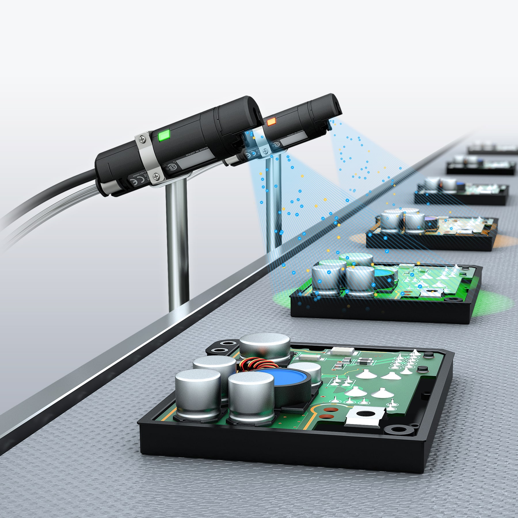 可透過燈光顏色讓使用者了解目標物目前帶電狀況。 從任何角度一眼就能得知是否已經(jīng)除電完成,可以簡單地確認設備運作時的除電效果。