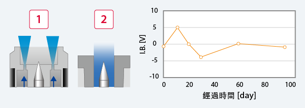 A.C.A.B 採用Clean Air Barrier進一步進化而來的Advanced Clean Air Barrier系統(tǒng)??刂乒┙o的CDA流動,在電極周邊形成「層流」。透過大幅減少導致靜電消除性能退化的電極前端「附著物」,實現(xiàn)減少維護業(yè)務的目的。