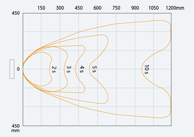 SJ-L005MT + SJ-MS1 靜電消除範圍及時間(氣壓 0.5 MPa) 量測條件